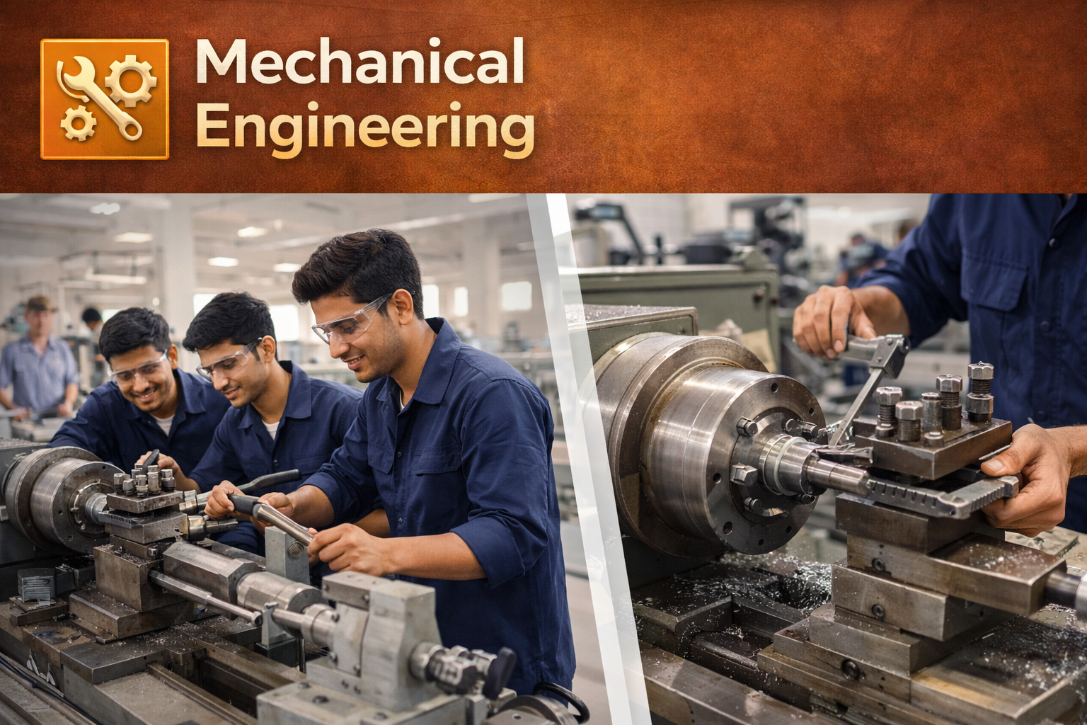 Mechanical Engineering deals with the design, manufacturing, and maintenance of machines and mechanical systems. The course covers subjects such as thermodynamics, machine design, production technology, and automobile engineering.