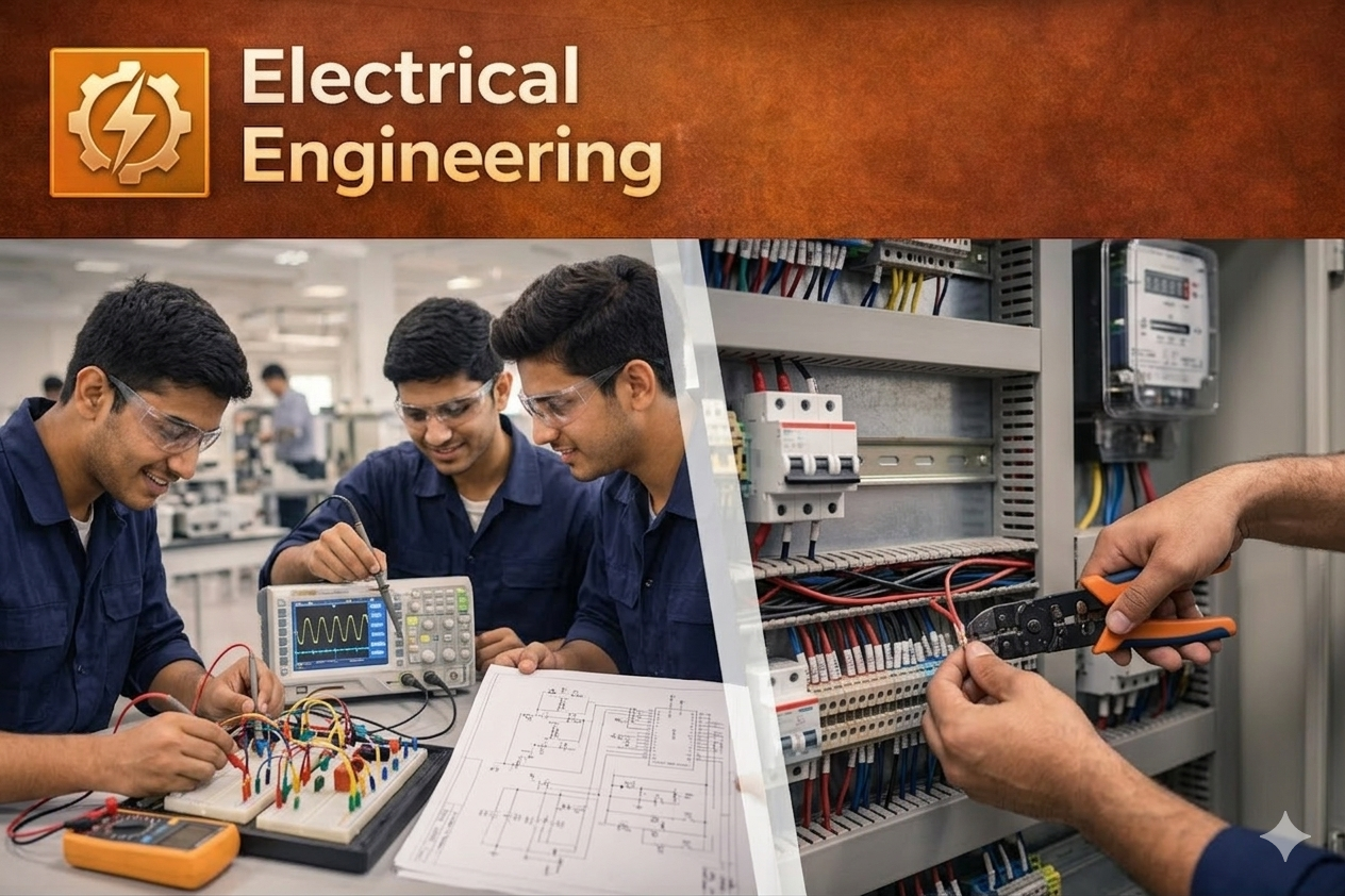 Electrical Engineering focuses on the study of electricity, power generation, transmission, and electrical machines. Students learn about electrical circuits, transformers, motors, power systems, and modern automation technologies through both theoretical and practical training.